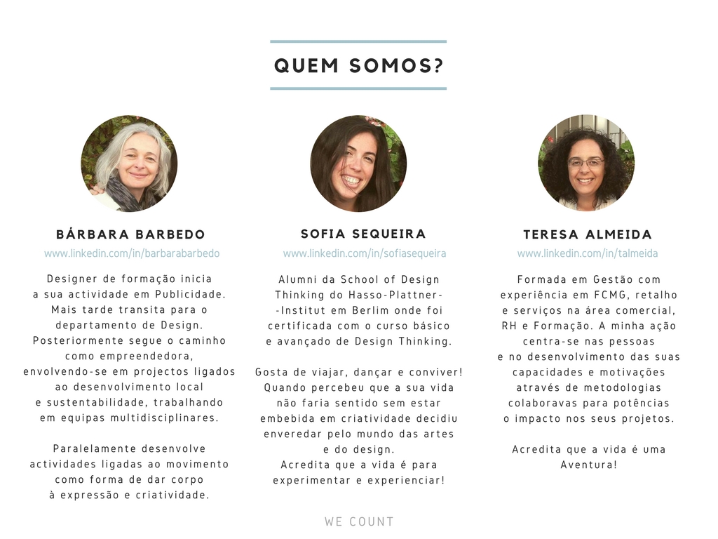 A DTeams passa a ser We Count. Tendo como colaboradoras activas, a Sofia e a Teresa!